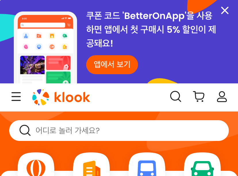 클룩 코리아 공식 사이트 접속 후 뜨는